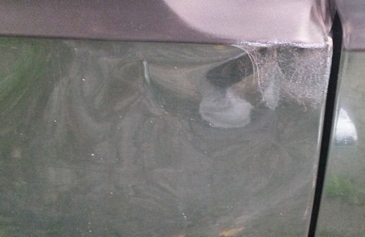 es so kalt nicht war, aber die Scheibe beschlagen ist.